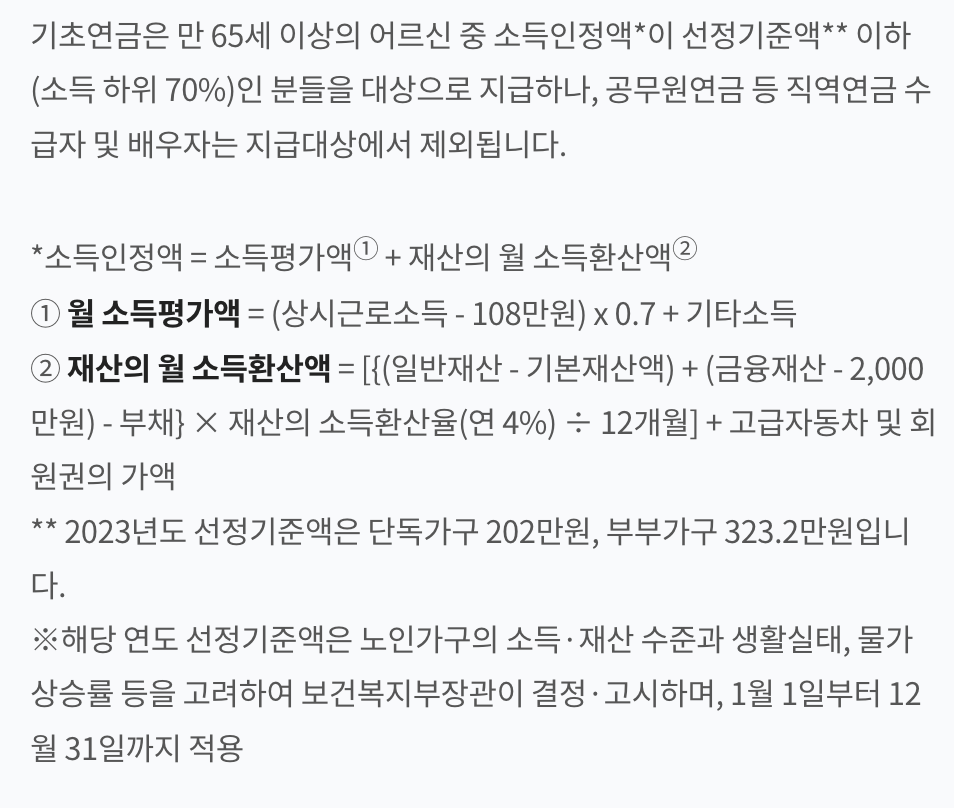 소득인정액과 기초연금액을 합산한 금액이 선정기준액을 초과할 경우에는