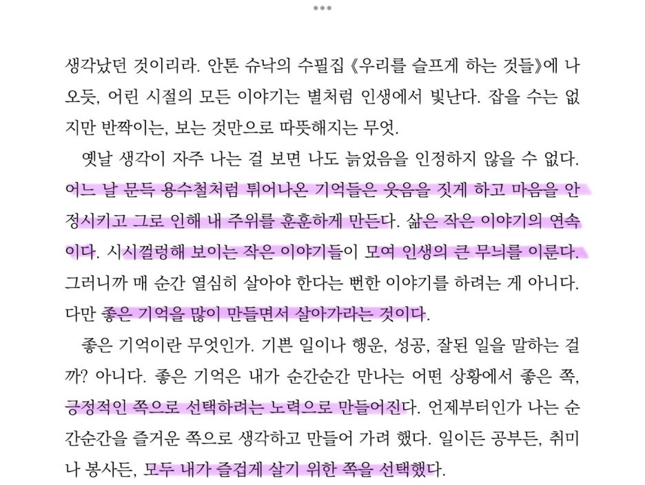 '어느 날 문득 용수철처럼 튀어나온 기억들이 웃음 짓게 하고 마음을 안정시키고 그로 인해 내 주위를 훈훈하게 만든다'의 주인공들이 내 곁에 존재하고 있음에 놀랐다.