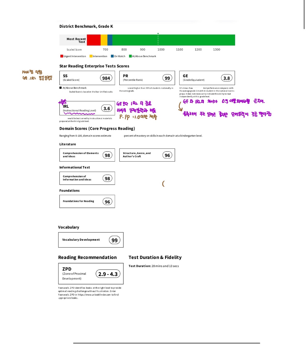 정리하자면, SR로 아이의 리딩레벨을 파악하고