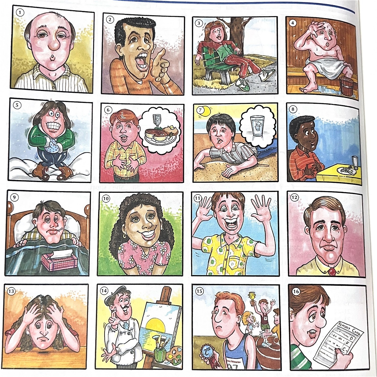 5. 추운 (Cold) 6. 배고픈 (Hungry) 7. 목마른 (Thirsty) 8. 배부른 (Full)